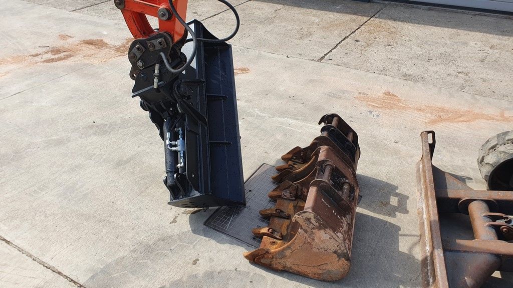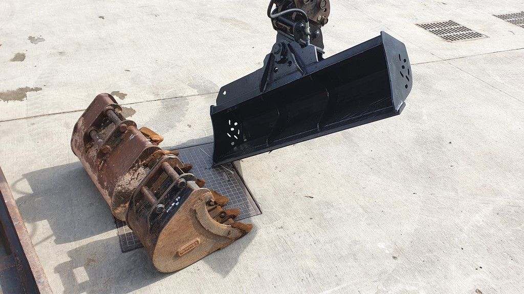 Livrée avec 3 godets, attache rapide, chenilles à 90%, éclairage, cabine de réchauffement fermée, vitesses de déplacement rapide et lente. Comprend 1 nouveau godet de nivellement hydraulique de 120 cm et 2 godets de creusement de 30 et 60 cm.